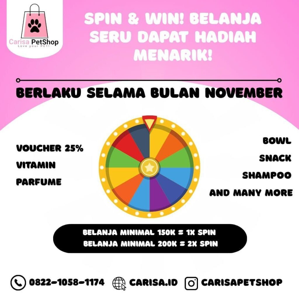Berlaku selama bulan November β yuk cobain keberuntunganmu sekarang di Carisa Petshop KHUSUS CABANG BSD! π